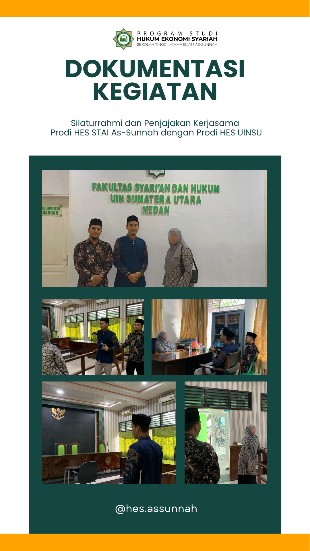 Pada hari Selasa, 10 September 2024, Prodi Hukum Ekonomi Syariah (HES) Sekolah Tinggi Agama Islam (STAI) As-Sunnah mengadakan kunjungan silaturahmi ke Prodi HES Universitas Islam Negeri Sumatera Utara (UINSU).